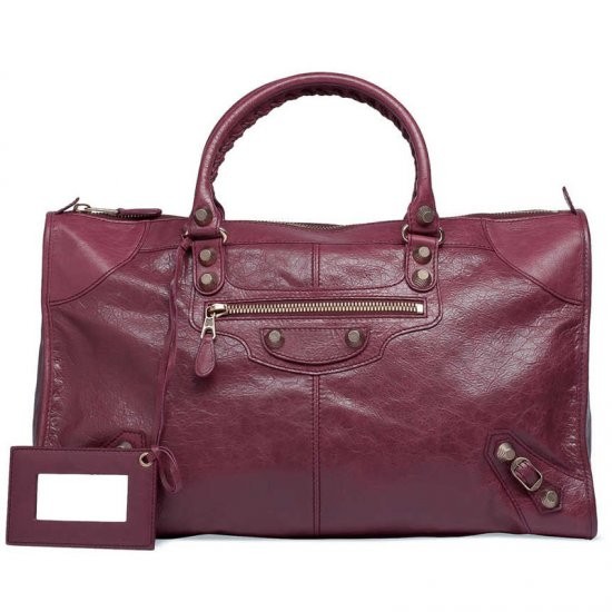 Description: Hand stitched handles - Top zip closure - Palladium plated metal hardware - Front zip pocket - Interior zip pocket with Balenciaga engraved plaque - Leather framed hand mirror - Made in Italy.