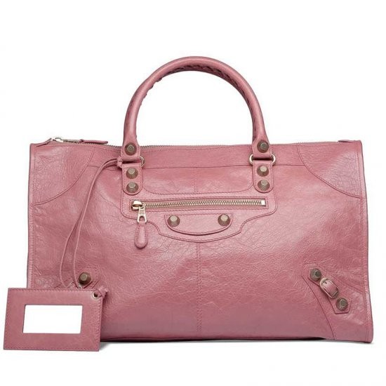 Description: Hand stitched handles - Top zip closure - Palladium plated metal hardware - Front zip pocket - Interior zip pocket with Balenciaga engraved plaque - Leather framed hand mirror - Made in Italy.