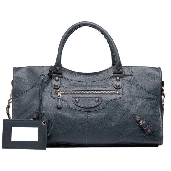 Description: Hand stitched handles - Removable shoulder strap - Top zip closure - Rose gold plated metal hardware - Front zip pocket - Interior zip pocket with Balenciaga embossed leather label - Leather framed hand mirror - Made in Italy.