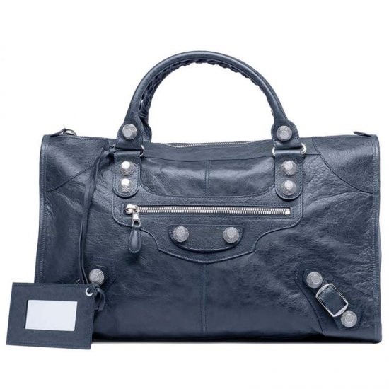 Description: Palladium plated metal hardware - top zip closure - hand stitched handles - front zip pocket - leather framed hand mirror - interior zip pocket with Balenciaga embossed leather tag - protective metal feet - made in Italy.