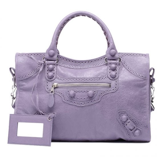 Description: Perforated leather details - leather covered metal hardware - top zip closure - hand stitched handles - removable shoulder strap - front zip pocket - leather framed hand mirror - interior zip pocket with Balenciaga embossed leather tag - made in Italy.