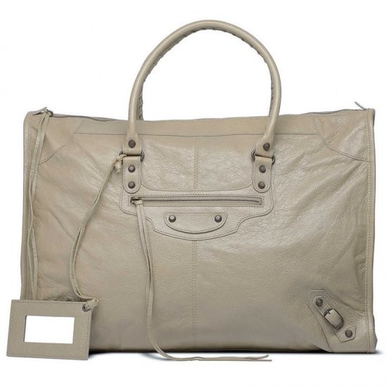 Description: Hand stitched handles - Top zip closure - Aged brass hardware - Leather tassel zipper pull - Front zip pocket - Interior zip pocket with Balenciaga engraved plaque - Double phone compartment inside - Leather framed hand mirror - 4 metallic studs at base - Made in Italy.