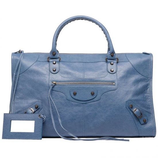 Description: Soft vintage crafted lambskin - aged brass hardware; top zip closure - hand stitched handles 13 cm drop - front zip pocket; leather strings on zips - leather framed hand mirror - fine textile lining - interior zip pocket with Balenciaga engraved plaque - made in Italy.