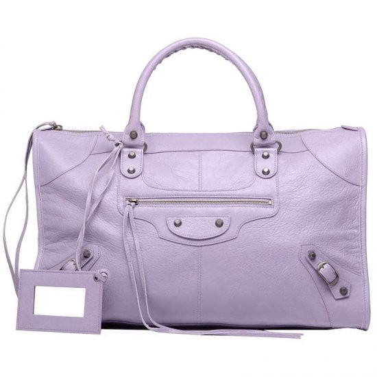 Description: Soft vintage crafted lambskin - aged brass hardware; top zip closure - hand stitched handles 13 cm drop - front zip pocket; leather strings on zips - leather framed hand mirror - fine textile lining - interior zip pocket with Balenciaga engraved plaque - made in Italy.