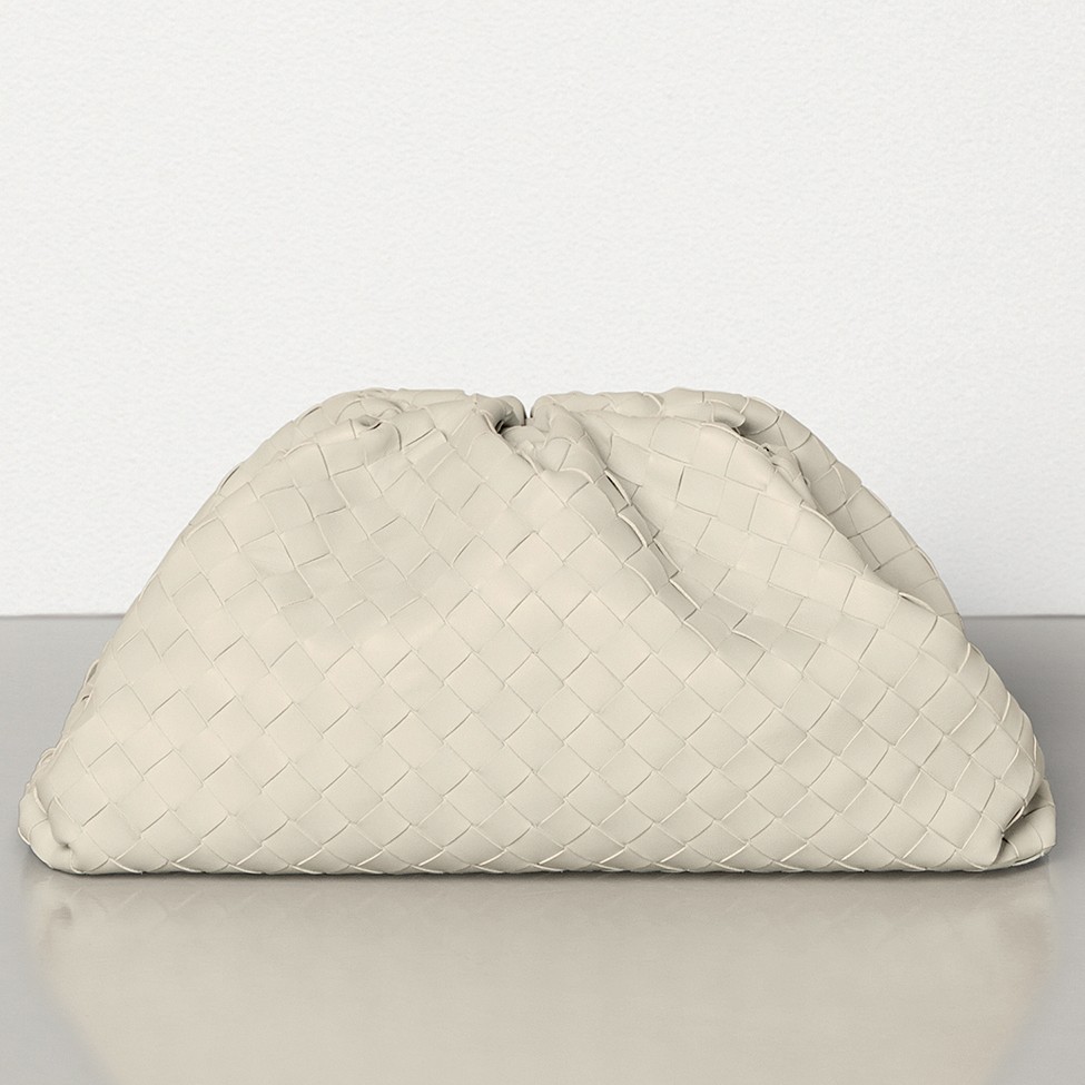 • Bottega Veneta The Pouch Clutch In Plaster Intrecciato Leather