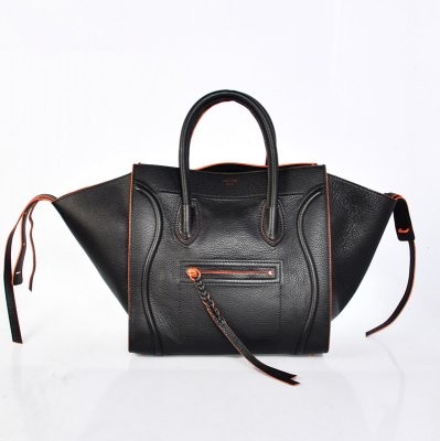 Celine Black Orange Boston Cowhide Bags uses materials that can be given a good polish and good look. Accessories like handles internal lining, pockets clips, buckle, zipper, buttons etc; are selected with great care and each accessory has to blend with the handbag material. At the same time, the stylish Celine Boston Bags are designed with fashionable appearance and cute charm which will make you stand out in the crowd.