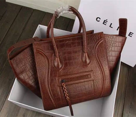 Celine Coffee Boston Croco Leather Bag