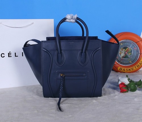 • Celine Navy Blue Boston Calfskin Leather Bag