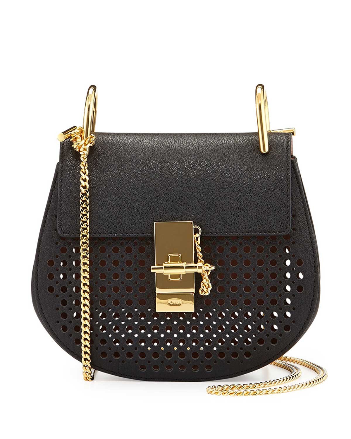 Chloe Drew Perforated Mini Shoulder Bag Black