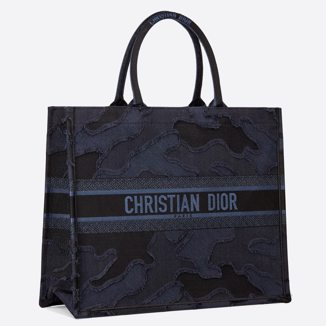 • Dior Book Tote Bag In Blue Camouflage Embroidered Canvas