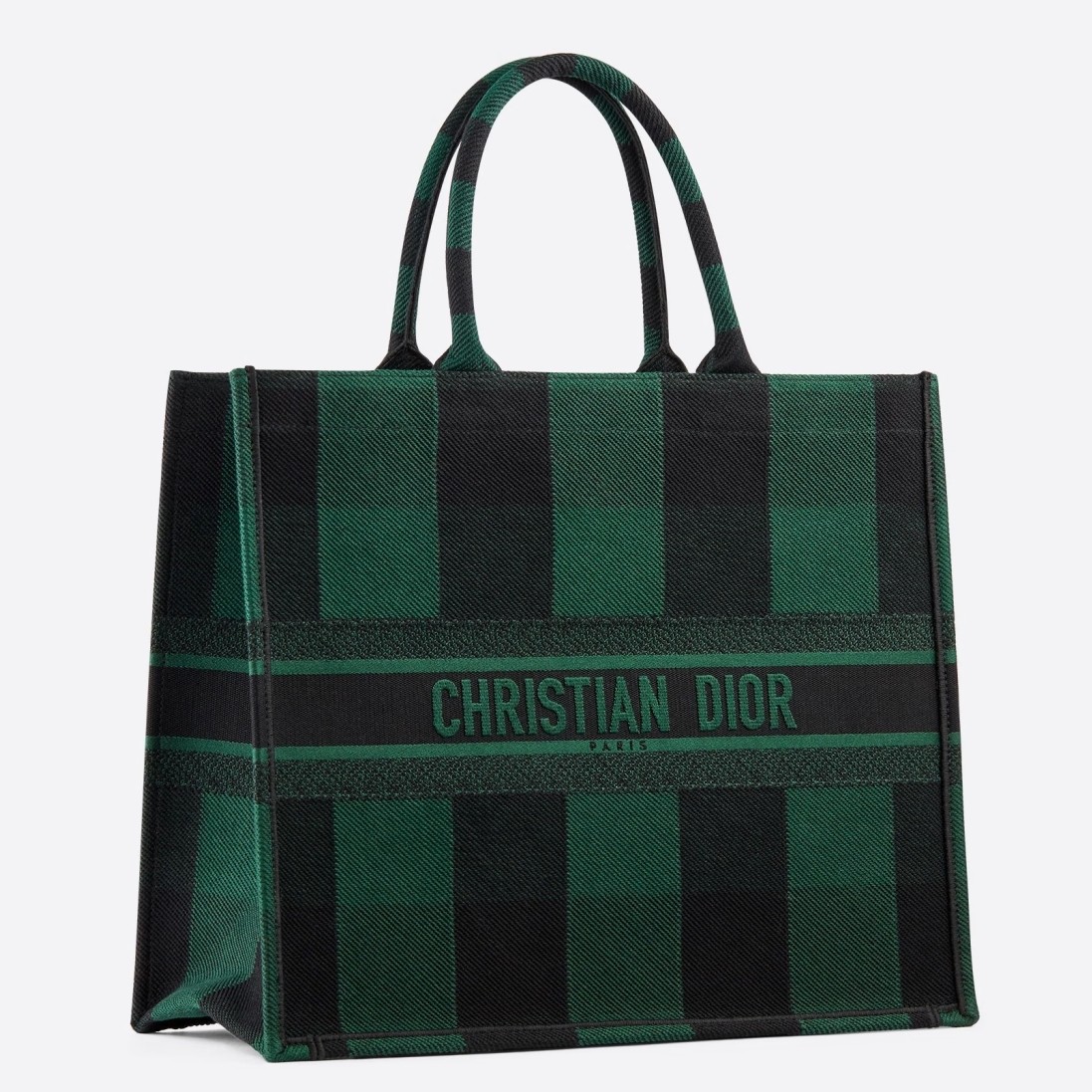 - 100% canvas embroidered with a leaf green and black Check motif- Carried in the hand or on the shoulderSize: 41.5 x 35 x 18 cmComes with Dior dust bag and certificate card.