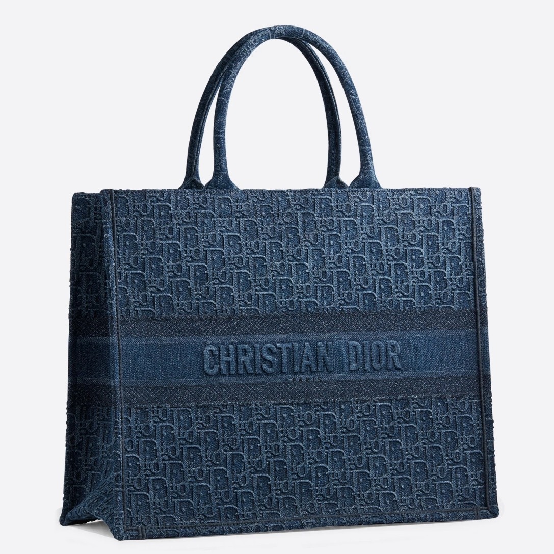 • Dior Book Tote In Denim Blue Dior Oblique-embroidered Canvas