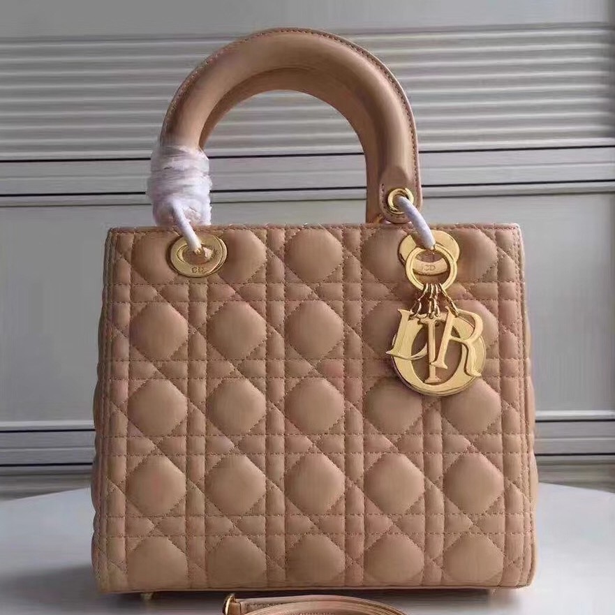 • Dior Medium Lady Dior Bag In Apricot Lambskin