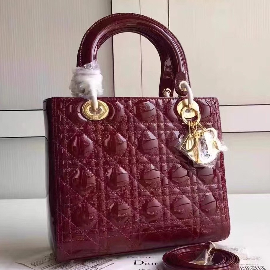 Dior Medium Lady Dior Bag In Bordeaux Patent Leather