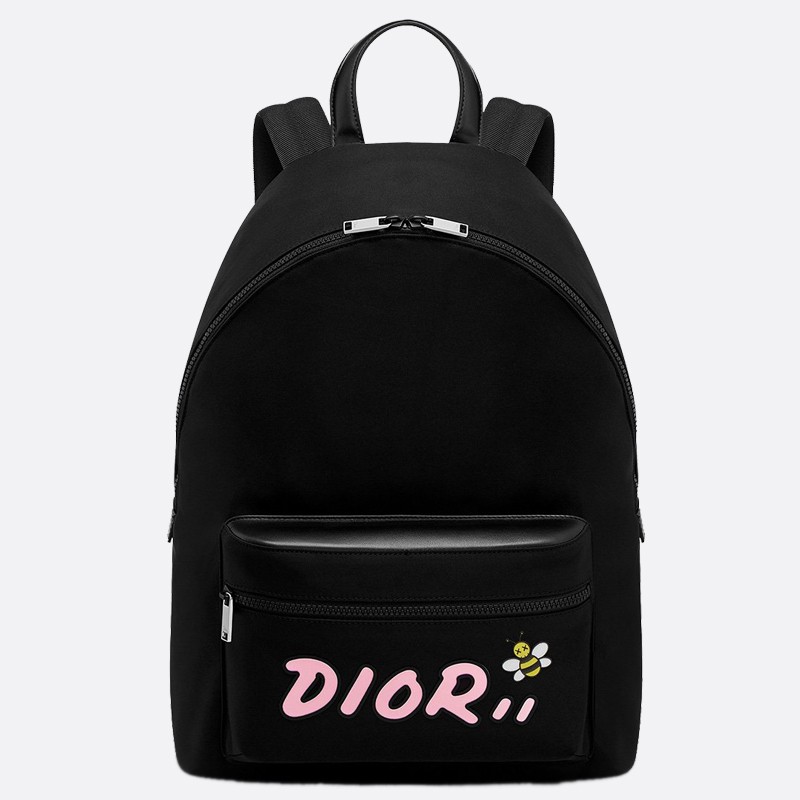 Dior X Kaws Black Nylon Backpack With Pink Dior logo