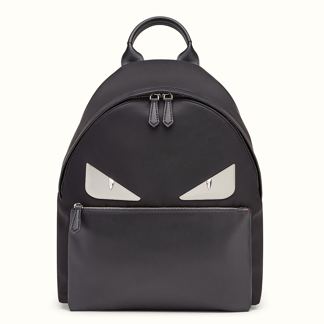 - 100% calfskin leather and nylon- Adjustable fabric shoulder straps- Top double zip closure- Technical mesh backing- Interior one zip pocket and two flat pockets- Palladium metalware- Bag Bugs eye inlays in white leather and metal accentsSize: 34 x 40 x 20 cmComes with Fendi dust bag and certificate card.