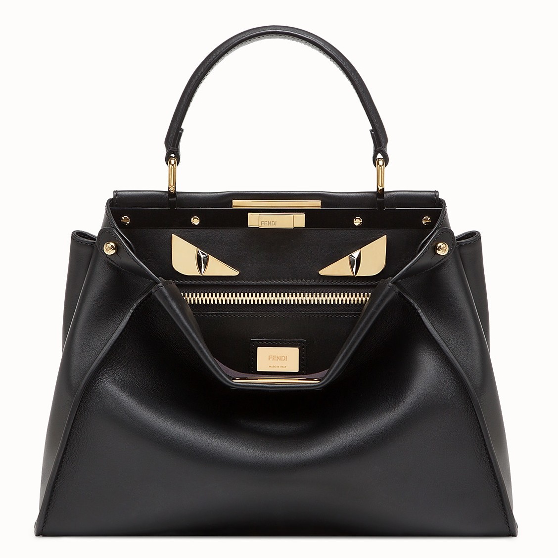 - Decorated with metal appliqués in the shape of Bag Bugs eyes