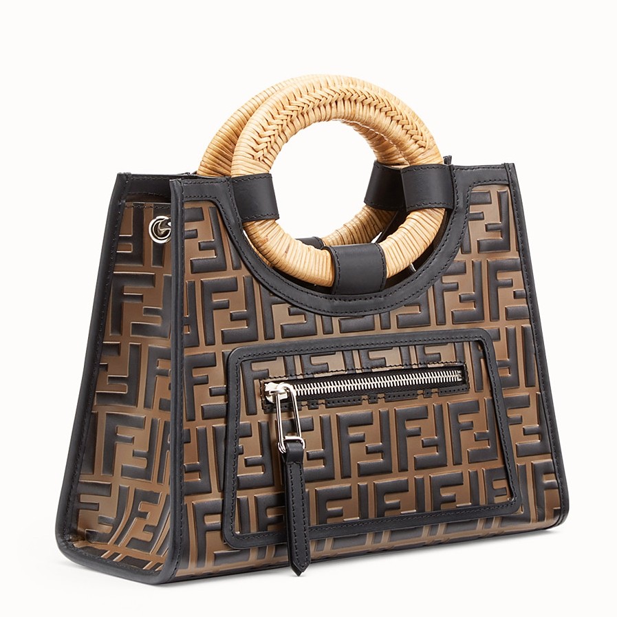- Leather with allover contrasting logo design- Removable shoulder strap- Rigid oval top handles- Open top- One exterior zip pocketSize: 28 x 21 x 11.5 cmComes with Fendi dust bag and certificate card.