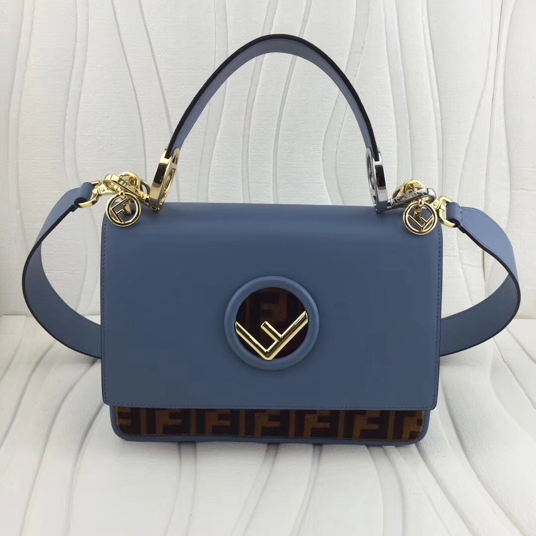 You're reviewing: Fendi Kan I F Shoulder Bag In Blue Calfskin With Printed FF Logo