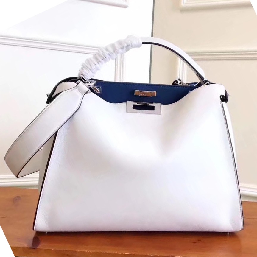• Fendi Peekaboo Essential Bag In White Calfskin