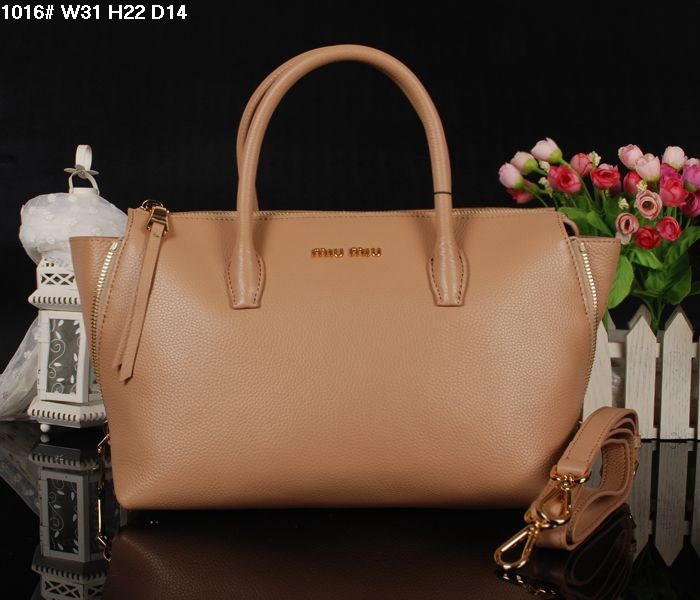 Miu Miu Apricot Leather Top Handle Bag