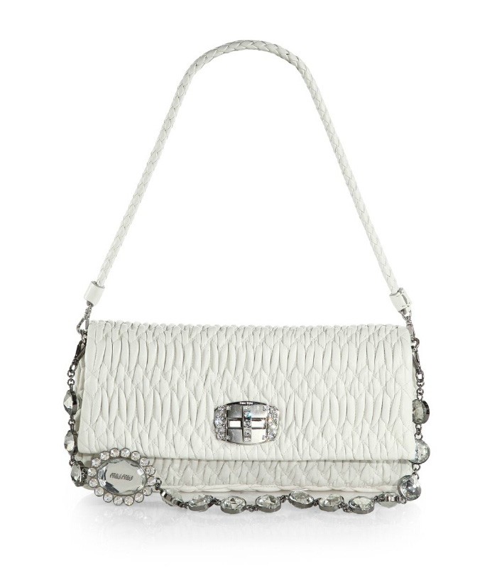 Puckered and pleated leather creates a rich texture in this shapely design, accented with two detachable straps, one of braided leather and one of sparkling rhinestones, to wear together or separately.
