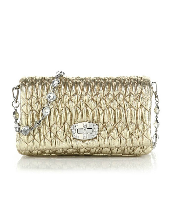 • Miu Miu Embellished Leather Shoulder Bag Platino
