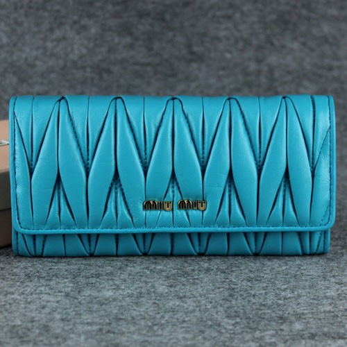 Miu Miu Matelasse Shiny Calf Leather Wallet 6618 Blue