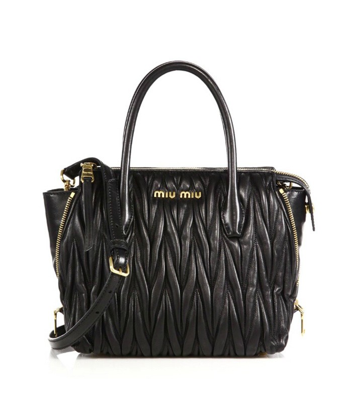 Miu Miu Matelasse Small Zip Tote Black