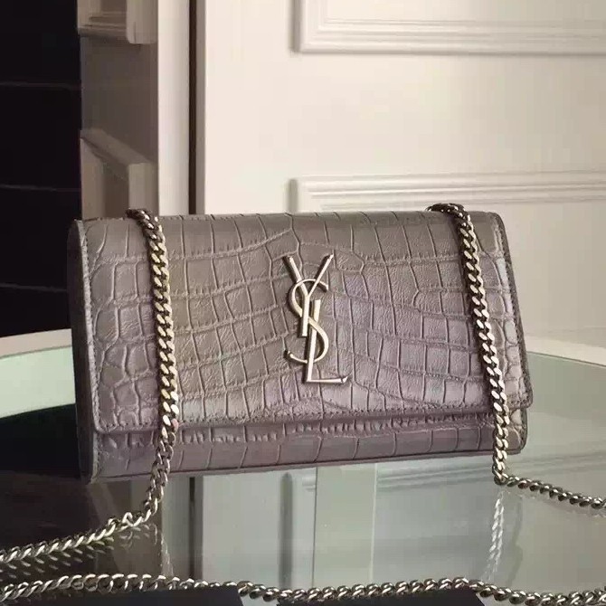 • Yves Saint Laurent Medium Monogram Satchel In Grey Crocodile Leather