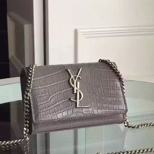 • Yves Saint Laurent Small Monogram Satchel Bag In Grey Crocodile Leather