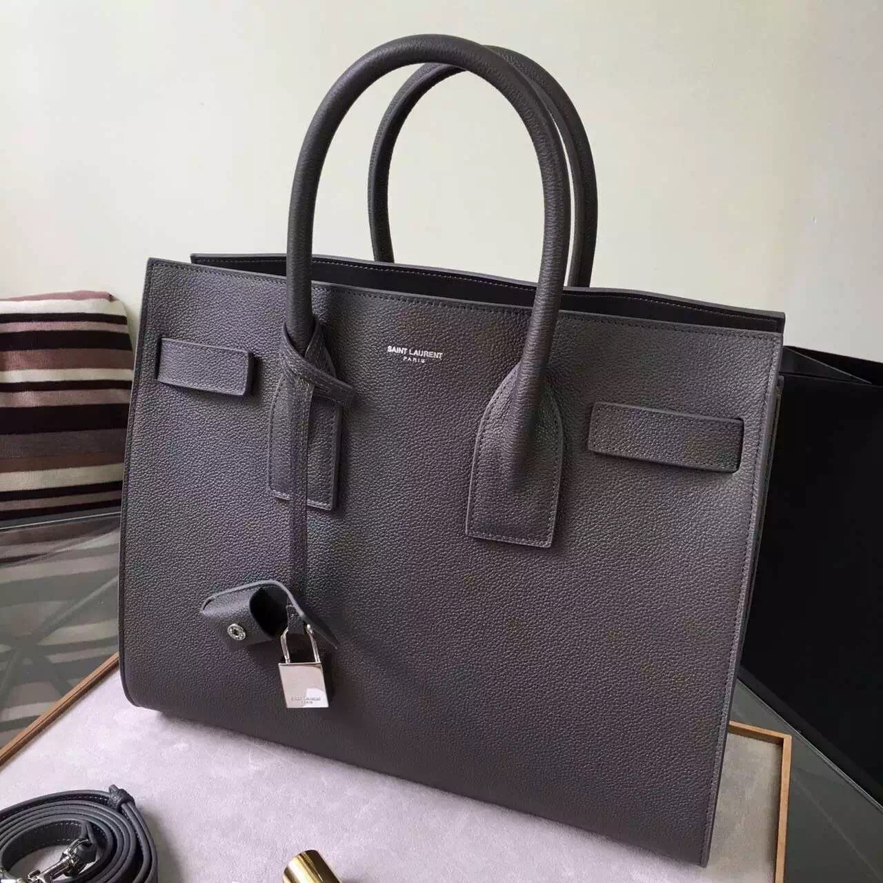 - Embossed Saint Laurent signature